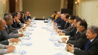 El rector Iván Grullón, los presidentes de la Federación de Profesores y de la Asociación de Empleados, así como representantes de los estudiantes y una comisión de exrectores, asistieron a la reunión en el Palacio Nacional con el ministro de la Presidencia, Gustavo Montalvo, y la ministra de Educación Superior, Ligia Amada Melo.