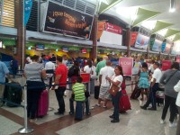 A las 10: 22 minutos decenas de pasajeros eran atendidos en los mostradores de la aerolínea en el AILA, a quienes se le requisaban sus documentos de viajes para esperar la primera aeronave del día que despegara hacia la ciudad de New York.