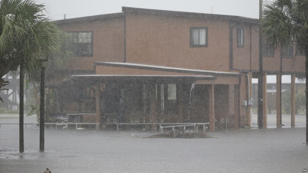 Courtney Chason en Carabelle, junto a la costa, observaba con su novia el jueves a medida que las olas generadas por la tormenta comenzaban a azotarse contra los muelles y los cobertizos para barcos, cubriendo algunos con agua agitada que lentamente dañaba las estructuras. El agua también se estrellaba contra los jardines cerca de la playa.