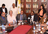 El anuncio fue hecho por el rector de la Universidad Católica Santo Domingo, Jesús Castro Marte, mediador del diálogo, el presidente del CMD, Waldo Ariel Suero y el testigo, Julio Amado Castaños Guzmán, quien ofreció algunos detalles de lo acordado.