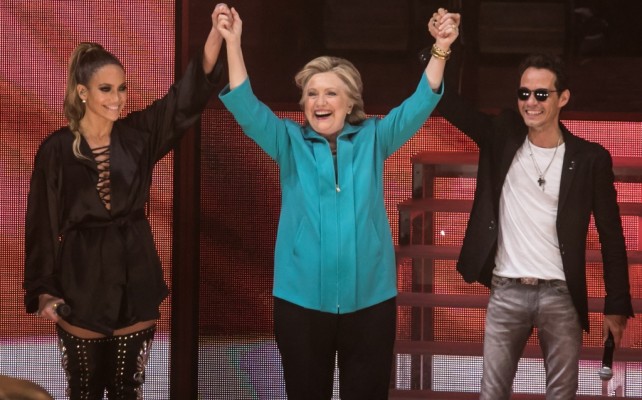 Jennifer López y Marc Anthony cantan bajo la lluva a favor de Hillary Clinton