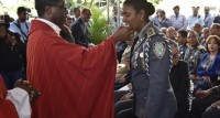Thaddeus Okolo, anuncio su apoyo a la mejoría salarial en las filas paliciales nada más y nada menos que en el propio Palacio de la Policía ante la presencia de su plana mayor, a donde acudió a oficiar una eucaristía con motivo de San Judas Tadeo.