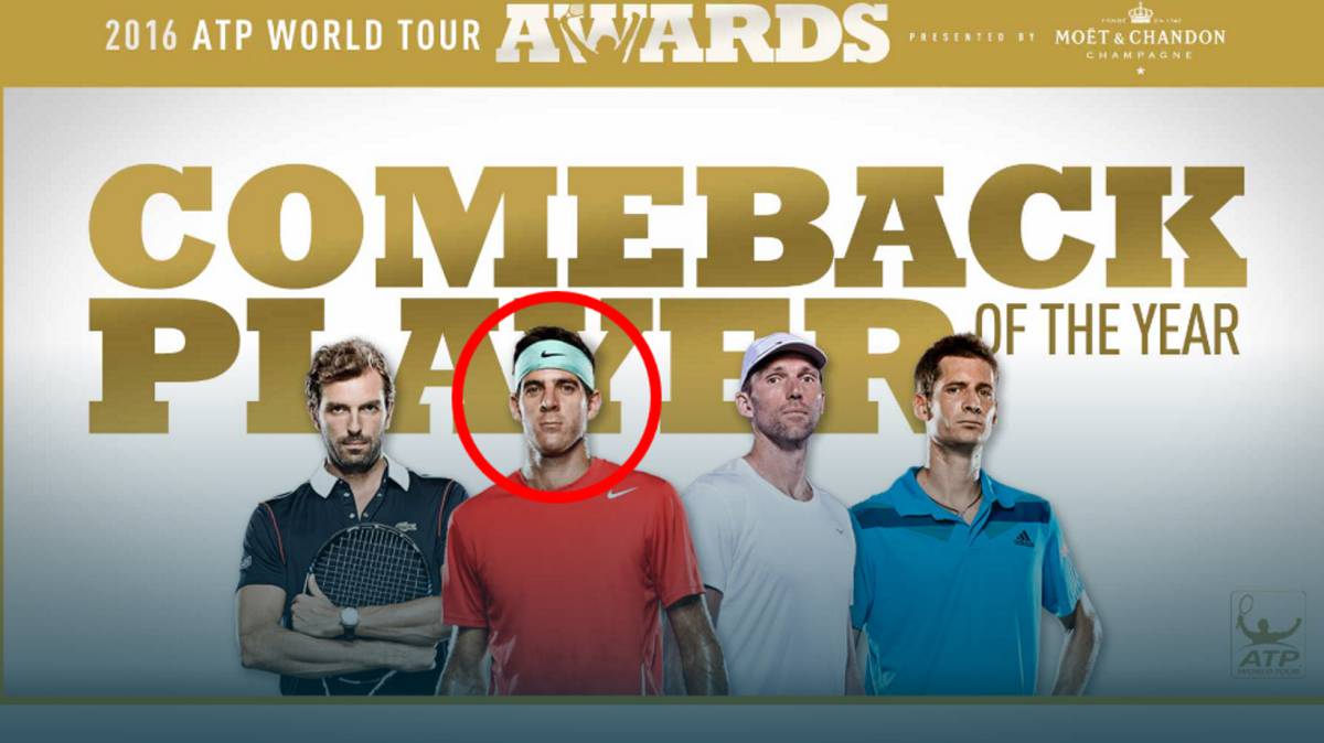 El tenista argentino Juan Martín Del Potro, quien a comienzos de año estaba fuera de los 1.000 mejores del ránking después de sufrir un calvario de lesiones, fue elegido este jueves por sus colegas del circuito ATP como ‘Regreso del año’ (‘Comeback Player of the Year’).