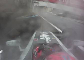 Pero cuando se abrió la calle de boxes para que los pilotos se dirigieran a la parrilla de salida, el monoplaza del piloto francés sufrió en sus propias carnes los efectos del ‘aquaplaning’: en la entrada a meta, una curva amplia de izquierdas, Grosjean perdió el tren trasero mientras aceleraba y su coche se fue directo al muro, dañándose gravemente la suspensión delantera izquierda del Haas. Resultado: abandono antes de empezar.