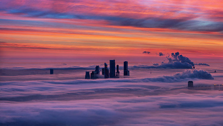La plataforma de observación de la torre más alta de Europa, ubicada a 340 metros de altura, fue el escenario escogido por un artista para obtener unas de las imágenes más espectaculares de Moscú.