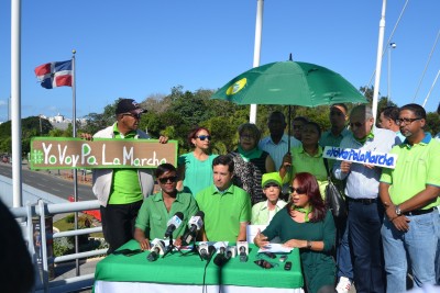 SANTO DOMINGO. En un escenario inusual, los organizadores de la marcha cívica convocada para el próximo domingo en contra de la impunidad en el caso de los sobornos de la empresa brasileña Odebrecht, se reunieron en el puente peatonal de la intersección formada por las avenidas 27 de Febrero y Máximo Gómez para invitar a los ciudadanos a integrarse a la acción cívica.