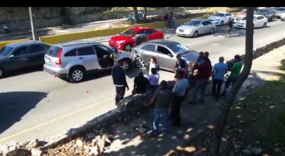 Según versiones, la yipeta CRV gris, placa G 304875, alegadamente impactó por detrás al carro Toyota también gris , placa A 683837, cuyo conductor perdió el control y chocó contra un muro.