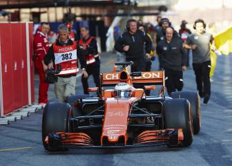 Destrozados. Así estaban en McLaren Honda ayer después de comprobar como todas las esperanzas y horas de trabajo que habían puesto en el nuevo coche se desvanecían apenas había amanecido la mañana cuando se producía una fuga de aceite en el monoplaza y todo el sistema se veía afectado sin que tuvieran una solución rápida para volver a poner al asturiano en pista. Estuvo más de seis horas fuera del asfalto.