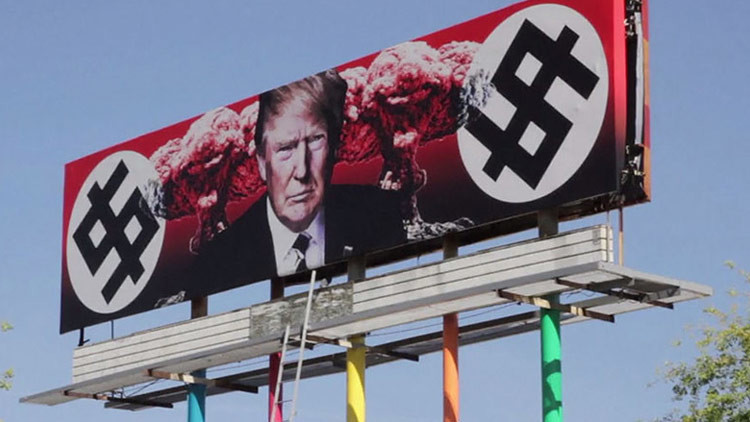 Aparece en EE.UU. una valla publicitaria que denuncia la 'dictadura nazi' de Trump (VIDEO)