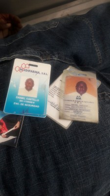 Según los documentos que portaba, Daniel Castillo laboraba como encargado de seguridad de laboratorios Medifarma. Además portaba un carnet de empleado del Ministerio de Agricultura, uno de un comité de base del PRD y uno de seguro médico.