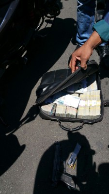 SANTO DOMINGO. Fuentes policiales indican que el asaltante que fue herido de un disparo en la cabeza cuando escapaba junto a otros dos individuos abordo de una motocicleta luego de asaltar un edificio de ARS Constitución cargaba con todo el dinero, unos dos millones de pesos, según se ha informado.