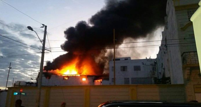 Las llamas de un incendio originado la madrugada de este Sábado Santo devoraban las instalaciones de un centro comercial, en un hecho ocurrido en la provincia San Pedro de Macorís.