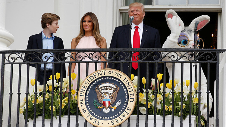 La primera dama ayuda a su marido a salir airoso de una incómoda situación durante la celebración tradicional de la Pascua en la Casa Blanca.