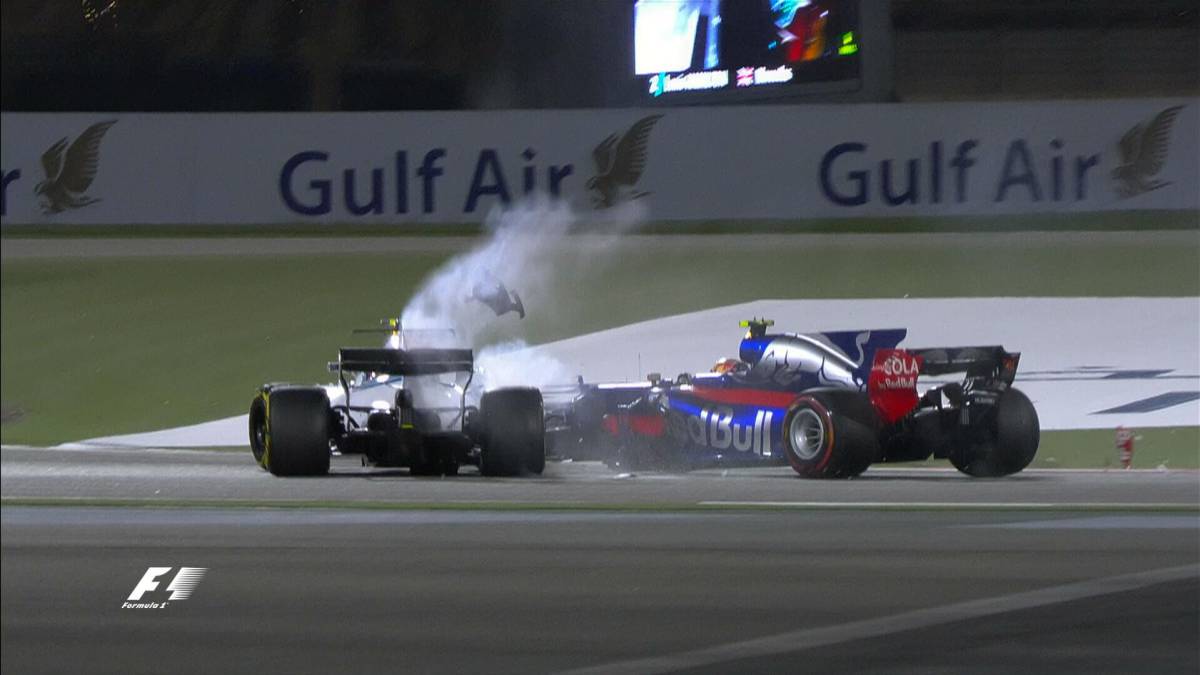 Accidentado inicio del GP de Bahréin en el circuito de Sakhir. En pocas vueltas el safety car tuvo que hacer acto de presencia después de que Carlos Sainz y Lance Stroll impactaran en la primera curva del trazado. El madrileño de Toro Rosso salía de la calle de boxes y al trazar la curva Stroll se acabó la carrera para ambos. «Me golpeó»,dijo Sainz por radio. Entonces era décimo y tenía opciones de puntuar tras empezar la carrera 16º.