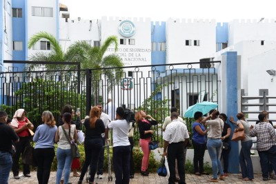 SANTO DOMINGO. Exempleados del recién desaparecido Instituto de Seguridad Social de la Policía Nacional (ISSPOL) protestaron está mañana frente a la sede de esa entidad en reclamo de que les sean entregadas sus prestaciones laborales.