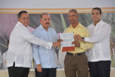 Una comunicación de prensa del Instituto Agrario Dominicano (IAD) dice que los parceleros que recibieron los títulos de las manos del jefe de Estado tenían 40 y 50 años esperando recibir ese documento, que a partir de ahora le abre las puertas al crédito y los convierte en legítimos propietarios de sus terrenos.