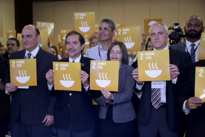 El discurso central del acto lo pronunció la directora general del programa Progresando con Solidaridad (Prosoli), Altagracia Suriel, quien representó a la vicepresidenta Margarita Cedeño. Participaron los responsables en el país del PMA y la FAO, William Vigil y Carmelo Gallardo, respectivamente; además de instancias del Estado, sector privado, académico, miembros de la sociedad civil y otros organismos internacionales comprometidos con la iniciativa.
