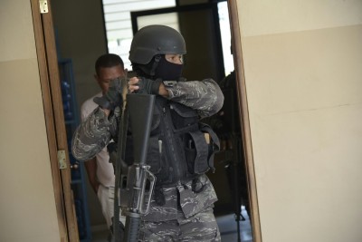 MOCA. Fuertes medidas de seguridad se han implementado en el Palacio de Justicia de este municipio en donde la Oficina Judicial de Atención Permanente del municipio realiza el conocimiento de la medida de coerción contra el dirigente popular Juan Comprés (Guanchy).