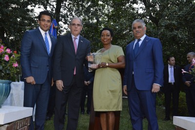 El evento tuvo lugar en los jardines de la residencia del embajador dominicano en Estados Unidos, José Tomás Pérez, al que asistieron alrededor de 250 invitados, entre los que se encontraban los miembros de la delegación de SemDomUSA, dominicanos de la diáspora e integrantes del gobierno, del Congreso y de organismos multilaterales.