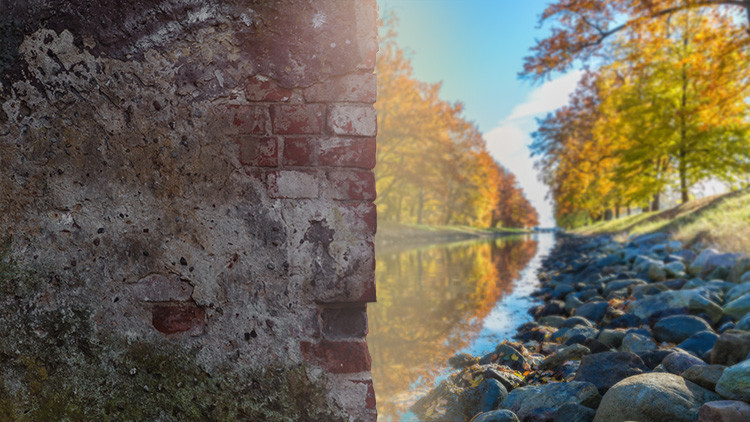 Fíjese en esta foto y trate de determinar qué es lo que se ve al fondo de la imagen. ¿Se trata de las aguas de un río o de la superficie de un muro?