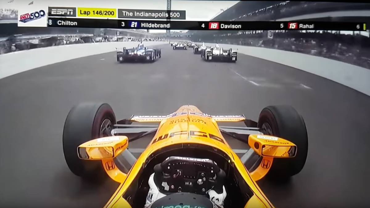 Muy diferente de su ambiciosa perspectiva desde dentro del McLaren Honda Andretti en las 500 Millas de Indianápolis. Porque durante una bandera amarilla (vuelta 145) y después de perder varias plazas, le decían al asturiano por radio: «Los pilotos contra los que creemos que pelearemos la victoria son Tony (Kanaan), Oriol (Serviá) y Sato. ¿Sabes qué coches son o te digo los números?». La respuesta de Alonso será recordada durante muchos años: «Vamos a adelantarlos a todos». Y su estratega contestó: «Eso lo hará mucho más fácil». Una lástima que, varias vueltas después, era la mecánica quien no acompañaba al asturiano y le obligaba a abandonar.
