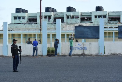 SANTO DOMINGO. Internos de la cárcel de Najayo colocaban desde la tarde de este miércoles unas planchas de metal en la verja perimetral del recinto, en San Cristóbal, para evitar que se pueda ver desde el exterior.
