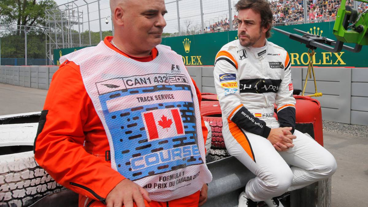 Alonso, convertido en estrella más allá de la pista, regaló los guantes a los aficionados y se metió en medio de la grada. Así lo explicaba a Juan Fossaroli, reportero de FOX: “Sí, bueno, los vi ahí, estaban muy exaltados, aquí hay mucha afición, tengo mucho apoyo aquí también, lo siento de cerca, y desde donde estaba no llegaba a tirar los guantes, así que me metí ahí y una vez que estaba allí casi no podía salir, pero fue una muestra de agradecimiento por todo el apoyo que nos dan”. Una manera de dejar poso, a pesar de todos los pesares…