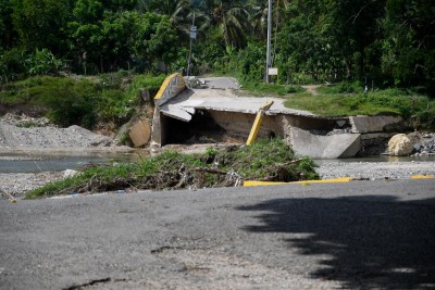 SAN CRISTÓBAL. El colapso de un badén, en el sector Boruga, del Distrito de Hato Dama, a causa de los últimos aguaceros registrados en el país, está afectando las actividades escolares y cotidianas en esa comunidad y sectores aledaños.