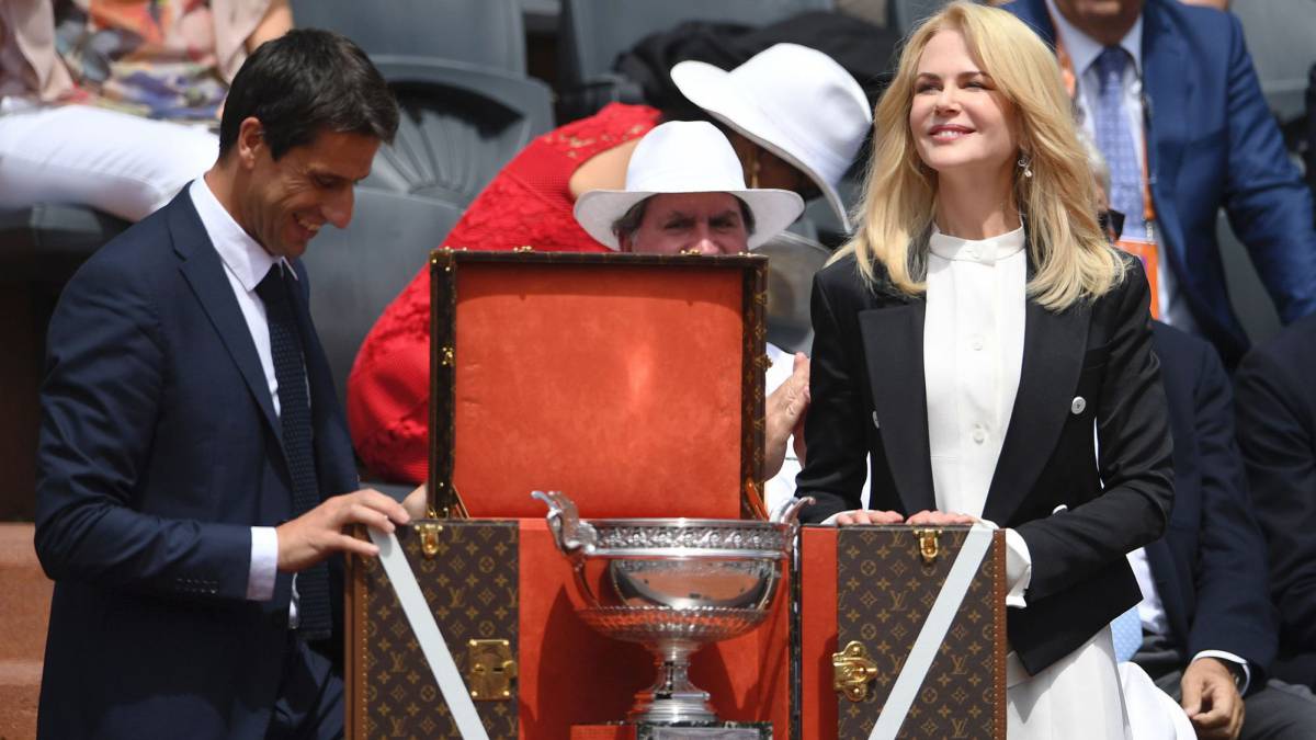 Nicole Kidman dio lustre a los prolegómenos de la gran final masculina de Roland Garros. Junto al campeón olímpico de piragüismo Tony Estanguet, la actriz australiana acompañó la llegada a la pista central de la Copa de los Mosqueteros. El trofeo de campeón de Grand Slam de París fue portado en un lujoso baúl de Louis Vuitton.