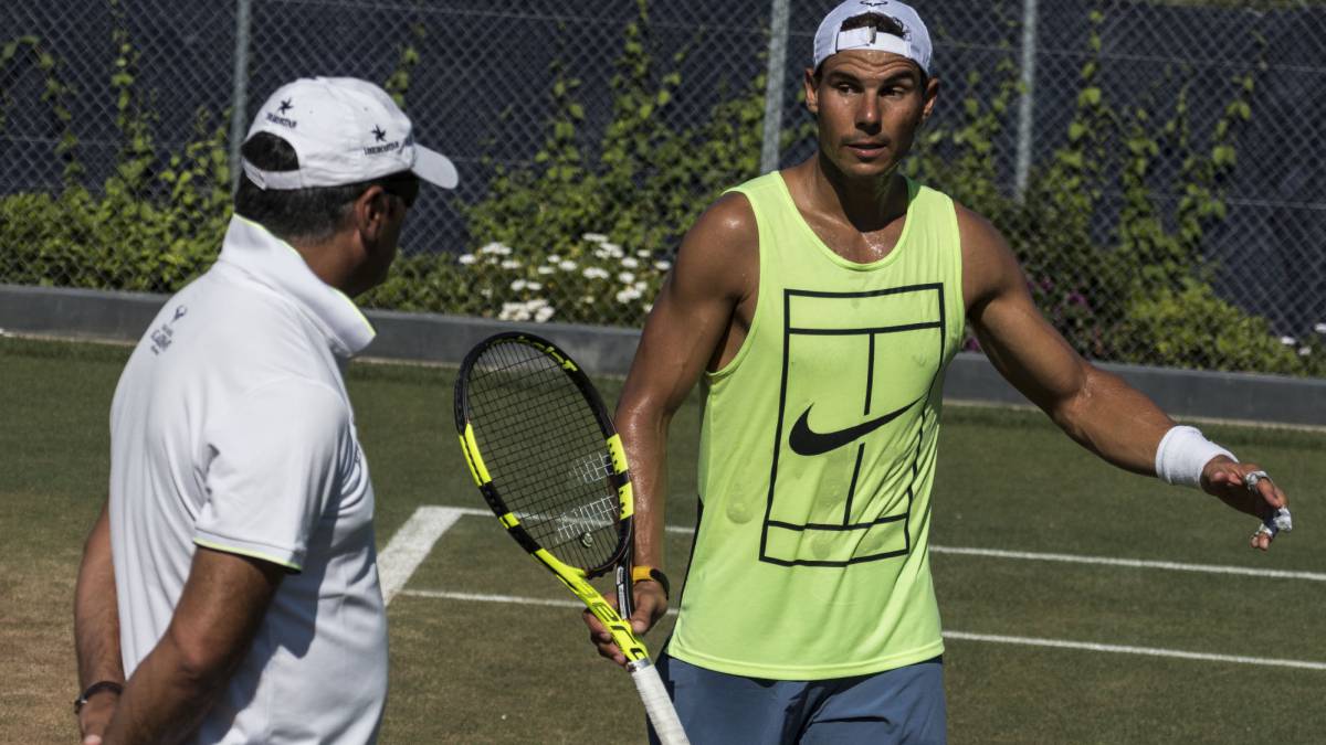 Rafael Nadal, número dos del mundo tras Andy Murray, se ha ejercitado hoy en las pistas de hierba del Mallorca Open junto con el chileno Christian Garin, ganador de dos títulos en la categoría Challenger en su preparación para Wimbledon.