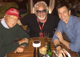 Pero aquí sigue. Y estuvo de buena mañana reunido, otra vez, con Toto Wolff después de que la noche anterior cenara con el austríaco jefe de Mercedes y también con Niki Lauda, en la una foto que parecía sacada de una promoción de El equipo A. Faltaba Mr T.