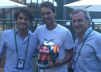 Una vez concluido el enfrentamiento y ya con el sol escondiéndose tras casi cinco horas de partido, los Sainz se encontraron con Rafa y Carlos hijo le regaló uno de sus cascos de F1 para su museo. El propio piloto madrileño se encargó de informar sobre su encuentro por medio de su cuenta oficial de ‘Twitter’. «Después de ver uno de los partidos del año he pasado a saludar a mi amigo @RafaelNadal y le he dado este casco para su museo. ¡Animo campeón!», escribía junto a un par de fotos que reflejaban el momento.