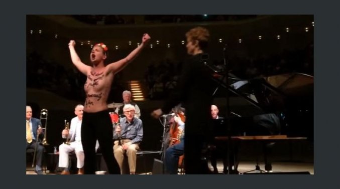 Dos activistas del colectivo feminista Femen interrumpieron ayer un concierto de Woody Allen y la New Orleans Jazz Band en la Filarmónica de Hamburgo (norte de Alemania) para reivindicar el «fin de la cultura del silencio» ante los abusos sexuales.