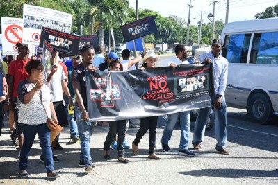 Moradores de los residenciales Gabriela, Las Canas, Los Cerros, Camil I, Camil III, Coruña, Alameda del Río y Pradera de Alameda, marcharon por la prolongación 27 de Febrero con pancarta y consignas.