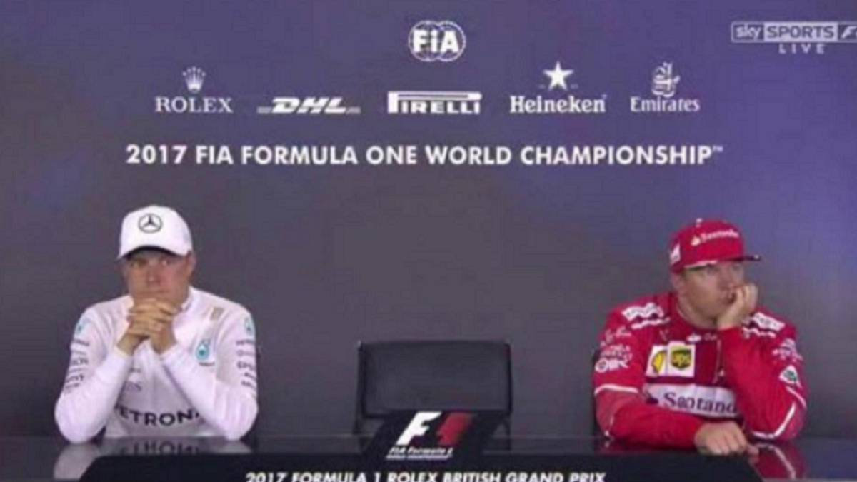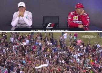 Si. Porque el británico, que logró la victoria en Silverstone, prefirió celebrar su triunfo con los aficionados antes de atender a los medios de comunicación, lo que provocó la curiosa imagen de Bottas y Raikkonen sentados en la sala de prensa sin saber muy bien cómo actuar.