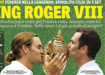 Los principales medios de todo el mundo recogen en sus portadas de sus ediciones impresas y digitales el triunfo de Roger Federer ante Marin Cilic en la final de Wimbledon. Con este triunfo, Federer hizo historia al convertirse en el primer tenista en ganar ocho veces Wimbledon y en ampliar su cuenta de Grand Slam a 19 títulos y este hecho no ha pasado desapercibido en los medios de todo el mundo.