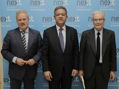 MADRID, España. El expresidente Leonel Fernández visitó la escuela de negocios Next International Business School en esta ciudad, en la que estudian alumnos de 13 nacionalidades distintas, entre los que se encuentran compatriotas suyos. El exmandatario departió con algunos de los alumnos dominicanos que allí se encontraban.