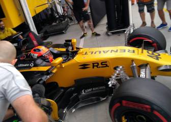 Sí ayer movía una nube de periodistas y fotógrafos a su paso estando únicamente vestido con los colores de Renault y fuera del coche, hoy, la expectación en torno al polaco en la pista y en las gradas es máxima. A las 9:00 de la mañana, cuando el semáforo se coloreó de verde para dar comienzo a la actividad de la jornada, no había objetivos más que para Robert. Sonrisa de nerviosismo, casco puesto, piloto dentro del RS17, mantas fuera de los neumáticos, salida del box… y ¡golpe contra la pared del garaje!
