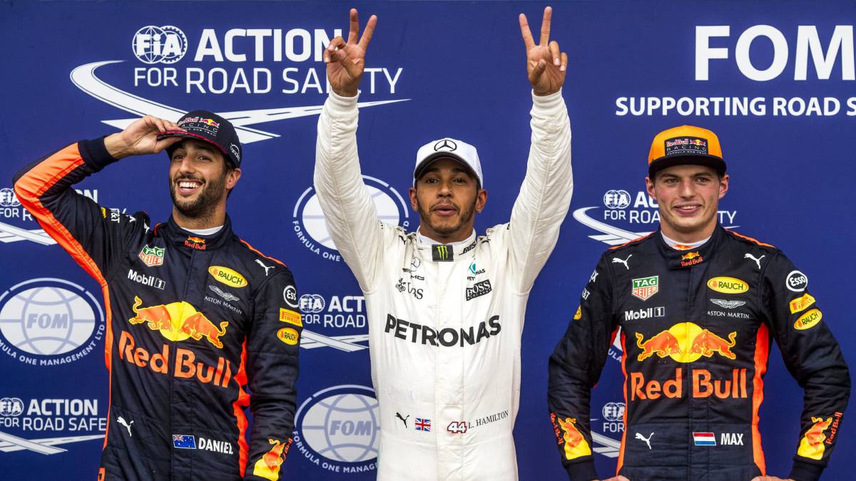 Verstappen tiene 20 puestos de sanción por sustituir varios elementos de su unidad de potencia superando la quinta unidad empleada esta temporada, Ricciardo suma 25. También optaron por el cambio los Renault: 10 puestos para Hulkenberg y 15 para Palmer. Carlos Sainz tenía 10 del viernes con su Toro Rosso y Fernando Alonso, 35 por los cambios en el motor Honda. Todo el baile de puestos, además de la lluvia, permite que en primera línea esté Lance Stroll con el Williams junto a Hamilton o que Esteban Ocon (Force India) empiece la carrera en tercera posición.