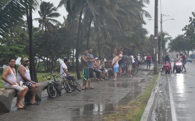 SANTO DOMINGO. Decenas de personas de los sectores aledaños a la avenida España, ignoran el llamado de las autoridades a tomar precauciones por los efectos del huracán Irma, y se recrean bajo la lluvia tomando bebidas alcohólicas en las orillas del mar.