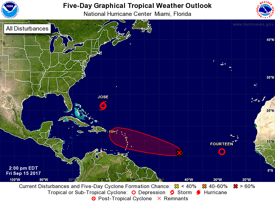 El sistema se encuentra a 1,100 millas al este de las islas de Barlovento y el Centro de Huracanes indica que las condiciones ambientales son propicias para el desarrollo, por lo que se podrían emitir alerta de tormenta tropical o huracanes para las Antillas Menores a partir del sábado.