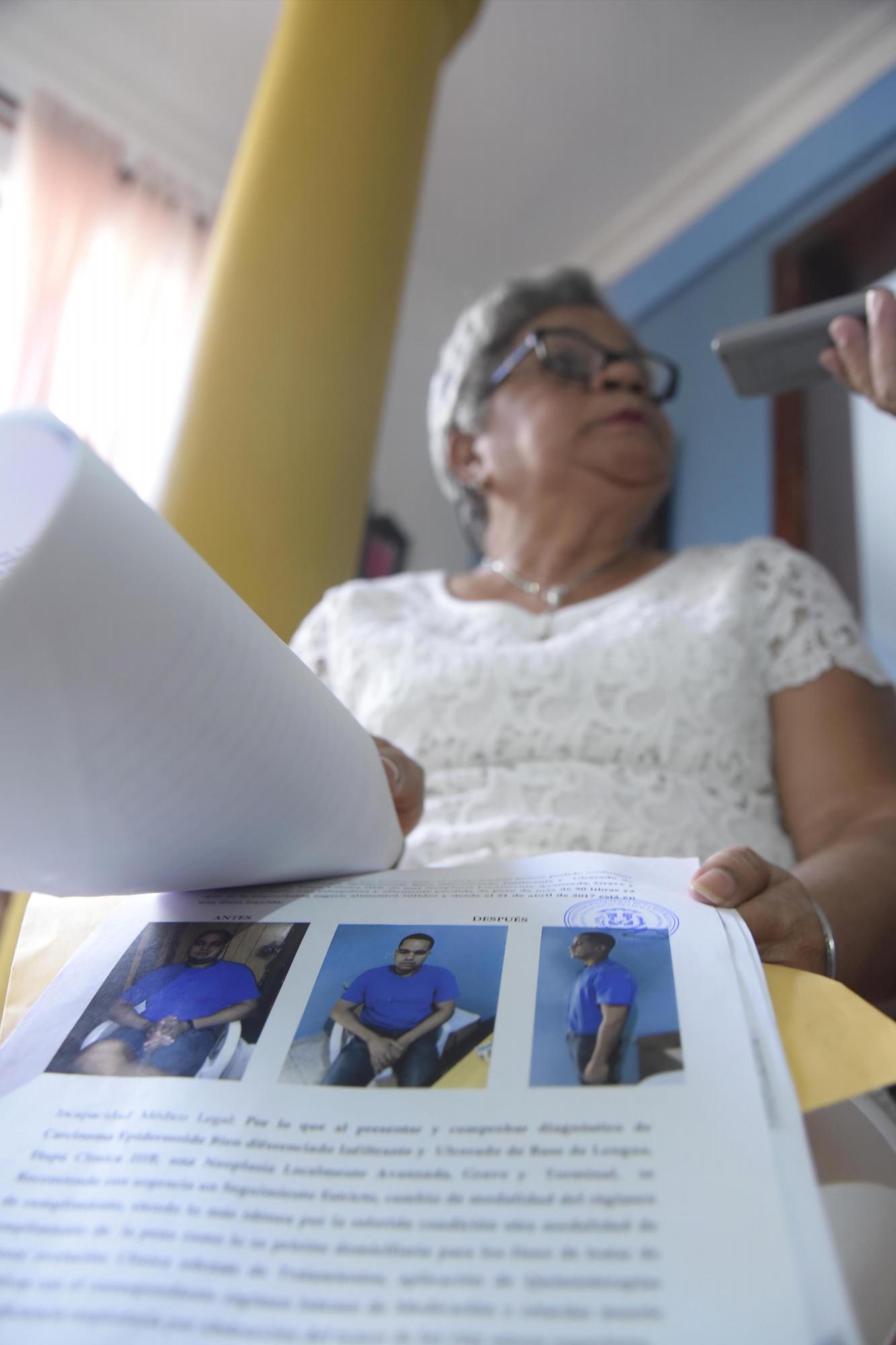 “Conforme a la sentencia dictada por la Dra. Aleyda Jiménez Acosta, Tribunal de la Ejecución de la Pena del Departamento Judicial de San Francisco de Macorís, certifico haber examinado a Pedro Alejandro Castillo Paniagua, casado, de nacionalidad dominicana, de 35 años de edad, recluido en prisión domiciliaria, que actualmente se encuentra en estado ambulatorio, padece de un carcinoma epidermoide bien diferido diferenciado infiltrante y ulcerado de base de lengua, etapa clínica IIIB”, señala el galeno.
