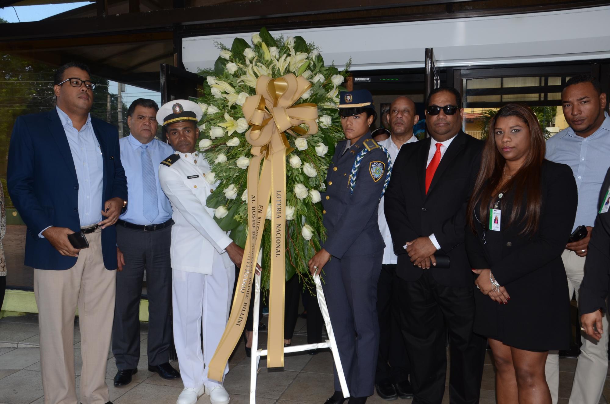 SANTO DOMINGO. A 135 años de la fundación de la Lotería Nacional, por el padre Francisco Javier Billini, funcionarios y empleados participaron en las festividades conmemorativas de la institución, que incluyó una ofrenda floral en el busto de su fundador y una misa a su memoria.