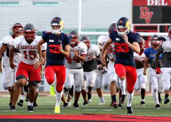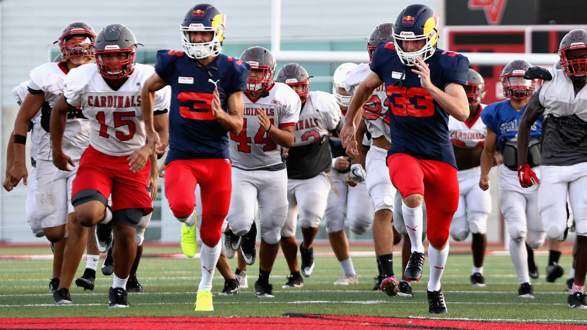 Max Verstappen y Daniel Ricciardo disfrutan los desafíos que les propone Red Bull en las previas de los grandes premios. Y en EE UU, como no podía ser de otra manera, el reto estaba relacionado con el deporte estrella del país, el fútbol americano. Holandés y australiano se pusieron las protecciones y participaron en una sesión de práctica en el High School ‘Del Valle’, sede de los Cardinals.