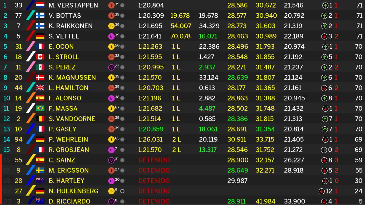 Victoria de Verstappen en México y título para Lewis Hamilton, a pesar del accidente que sufrió el británico de Mercedes en la tercera curva con el Ferrari de Sebastian Vettel. El alemán necesitaba al menos ser segundo para mantener vivas sus opciones, pero ese toque le obligó a remontar y le dejó demasiado lejos del podio.