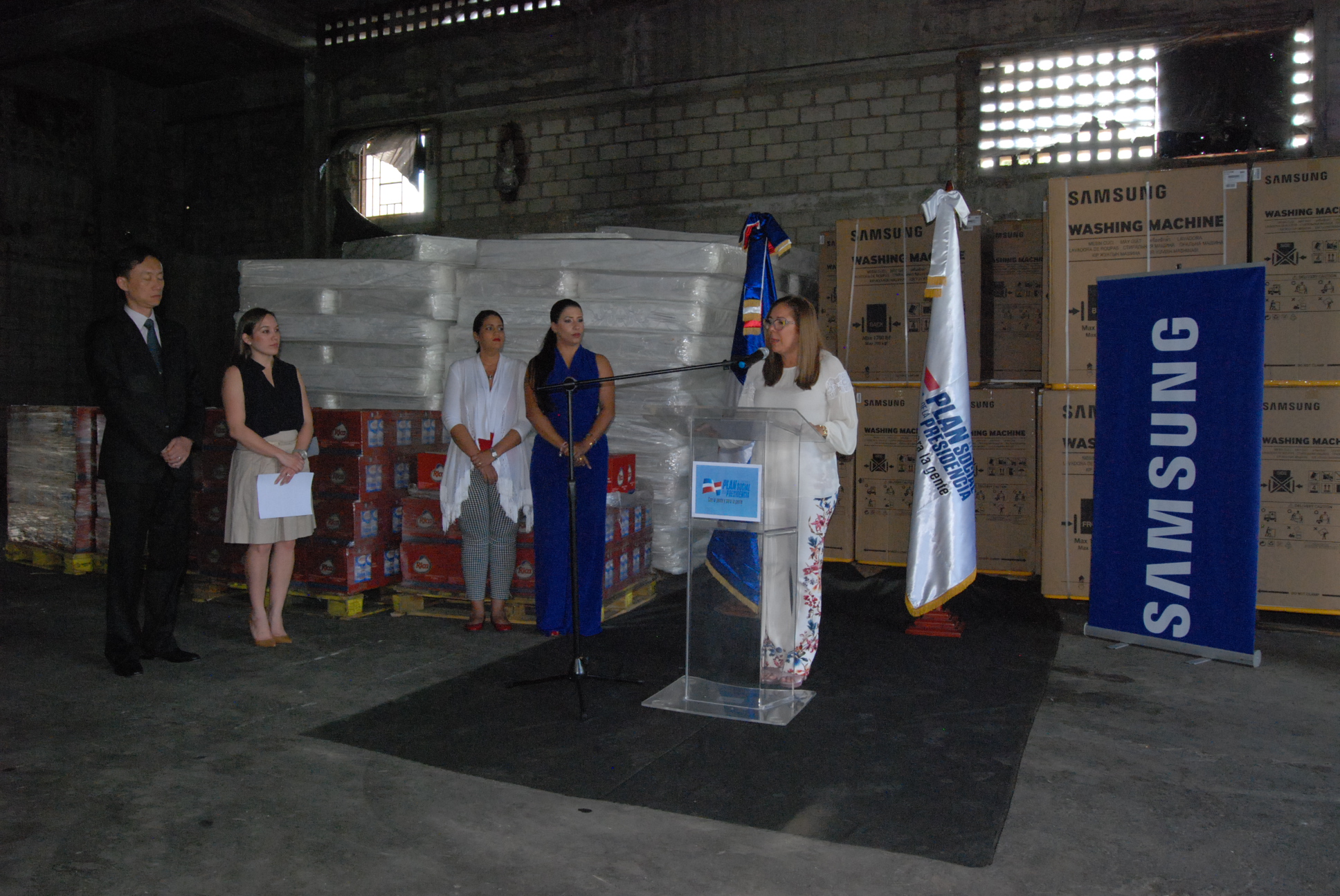 La donación, cuyo acto de entrega estuvo encabezado por el presidente de Samsung Dominicana, Fabián Ghim y la directora del Plan Social Iris Guaba, consistió en 150 máquinas lavadoras, así como unas 9,600 botellas de agua potable, 200 cajas de leche líquida, 100 cajas de leche en polvo y 150 colchonetas, como una forma de respaldar las necesidades de higiene y nutricionales de los integrantes de los hogares afectados.