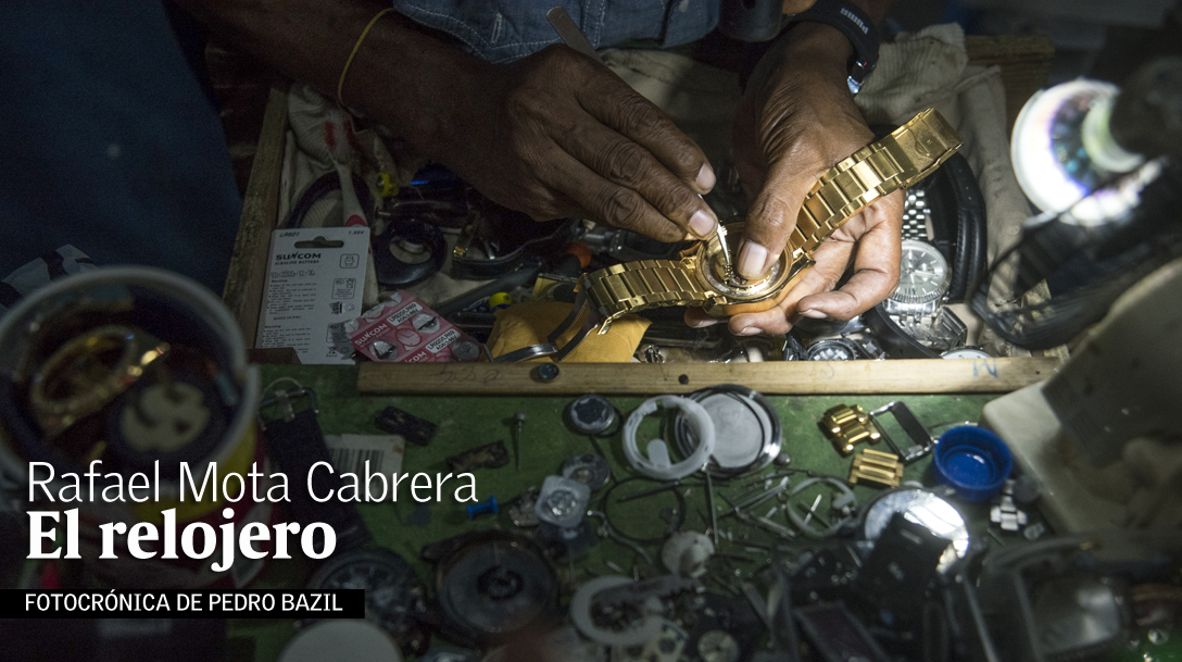 “Yo nunca he trabajado con nadie. Mi familia yo la sostengo de aquí, y siempre le he llevado el moro. Es mi familia la que me motiva para seguir adelante, porque había que salir a buscarles la comida a esos muchachos. Yo tenía dos hijos, una hembra y un varón, que estudiaron, y la hembra se me murió, pero el hijo mío se hizo profesional, estudió en una universidad privada y es Licenciado en Derecho, aunque él luego comenzó a trabajar para pagarse los estudios, fue de aquí que yo lo ayudaba al principio de su carrera”, se enorgullece el relojero.