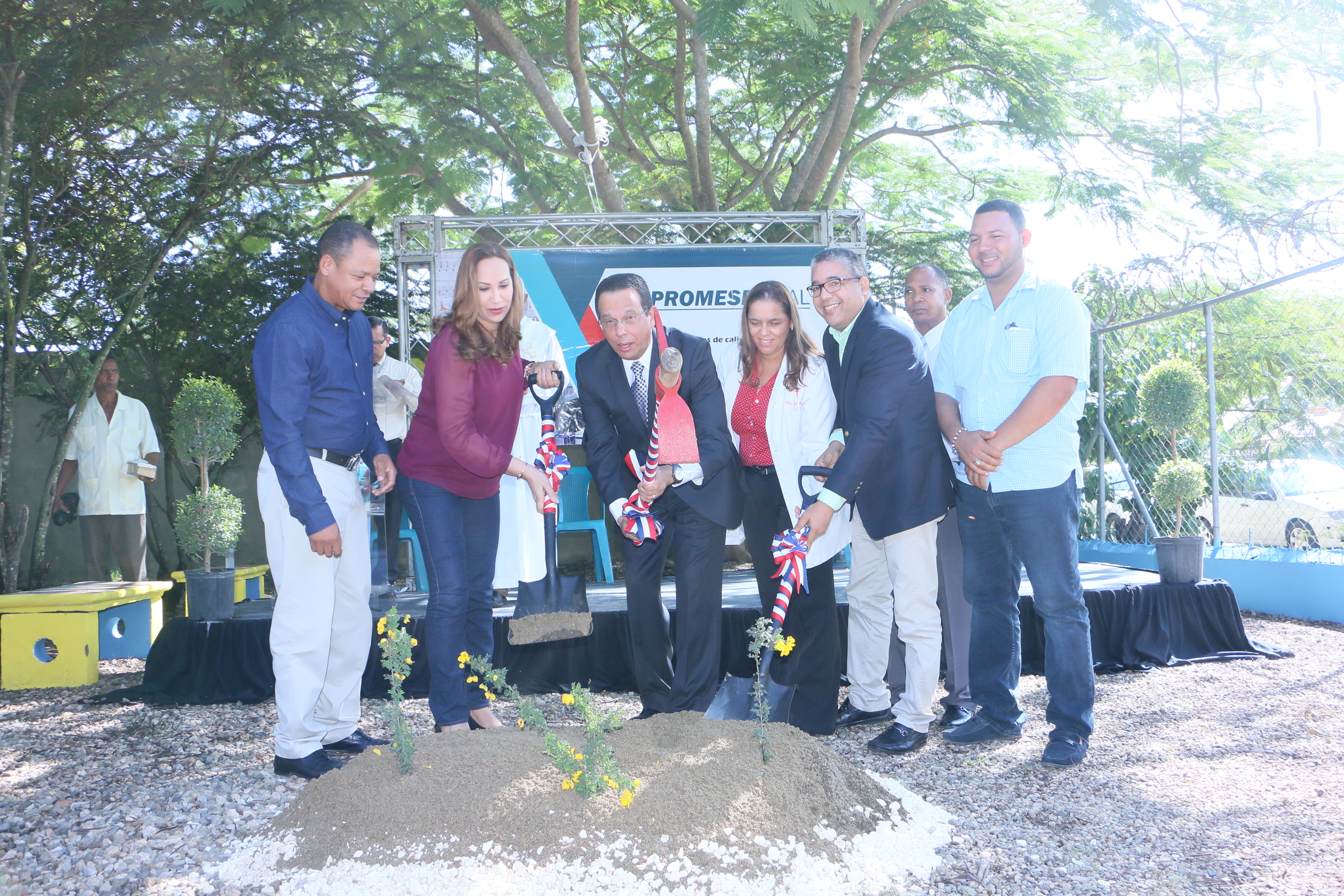 9596-Antonio Peña Mirabal, la gobernadora Aura Toribio y otras personalidades dan el picazo que deja iniciada la obra en Licey