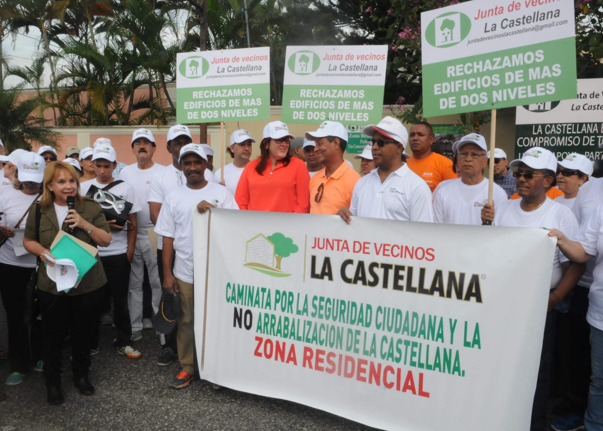 Durante la caminata organizada por la Junta de Vecinos La Castellana, los residentes estuvieron acompañados por la ministra de la Mujer, Janet Camilo, el magistrado Bienvenido Nolasco, de la Fiscalía del Ensanche Quisqueya, Emma Valois Vidal, presidenta del Consejo Nacional de Mujeres, Rosario Graciano, miembro titular de la Junta Central Electoral, Omar Méndez, Regidor Presidente de la Comisión de Juntas de Vecinos ADN, Dulce Collado, representante de las Juntas de Vecinos del ADN, Pérez Sánchez, encargado del departamento de Drenaje el Ayuntamiento del Distrito Nacional (ADN), Teotiste Sánchez, Regidora, Julián Roa , expresidente de ADORES y Exdirector del Instituto de Formación de la LMD, Tati Olmos, directora Turismo Cultural de Mitur, Horacio La Madrid, productor y director de televisión, el licenciado Juan Coronado , presidente Club Los Prados, Carmen Liriano, secretaria de la Junta de Vecinos La Mano de Dios, del sector Los Praditos, representantes de juntas de vecinos de Bella Vista, El Millón, Estancia Nueva, El Quisqueya, San Gerónimo, Residencial Mercurio, Ciudad Moderna, Los Prados, Tony Madera, Administrador del Provocón, entre otros.