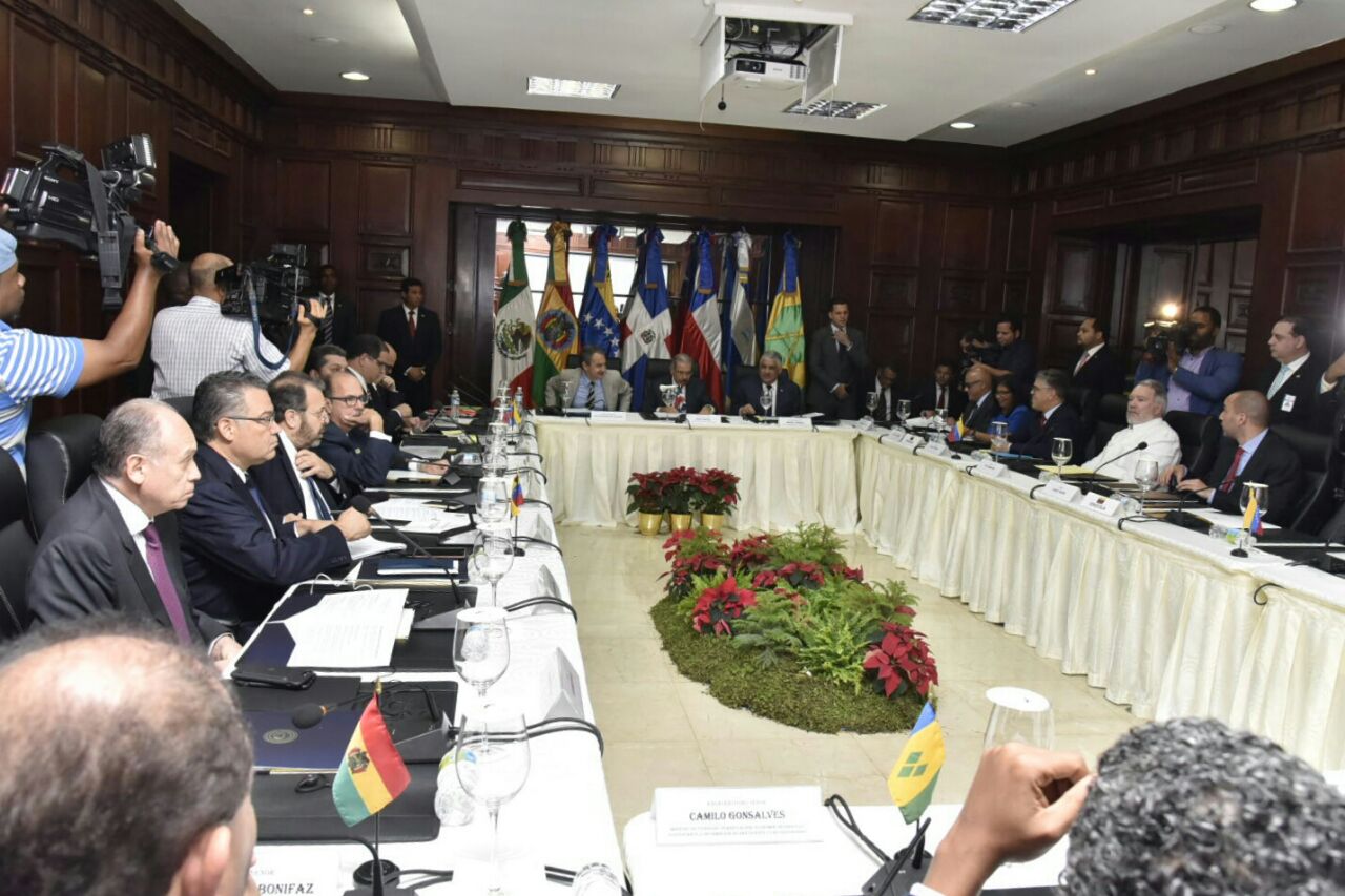 El presidente Danilo Medina encabeza la reunión conjuntamente con el expresidente del Gobierno español José Luis Rodríguez Zapatero y el canciller Miguel Vargas, quienes acompañarán a las partes en este proceso en la búsqueda de una salida democrática, pacífica y definitiva a la crisis de Venezuela.También participan los cancilleres de Bolivia, Chile, Nicaragua y México.